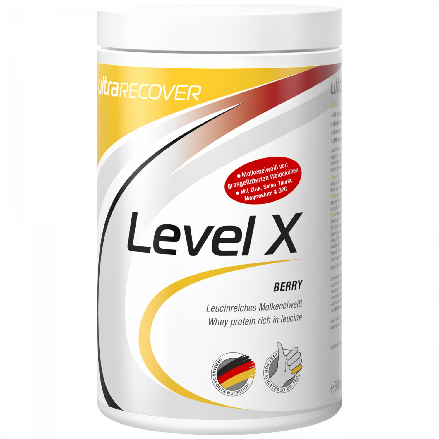 Ideal als tägliche Portion Eiweiß oder als Regenerationsgetränk nach dem Sport. Level X zeichnet enthält hochwertiges Molkenproteinkonzentrat und ist dadurch laktosefrei. Sportler profitieren von den besonderen Nährstoffen wie Magnesium, Vitaminen und Spurenelementen. Das breite Aminosäurenprofil rundet die gelungene Rezeptur ab.