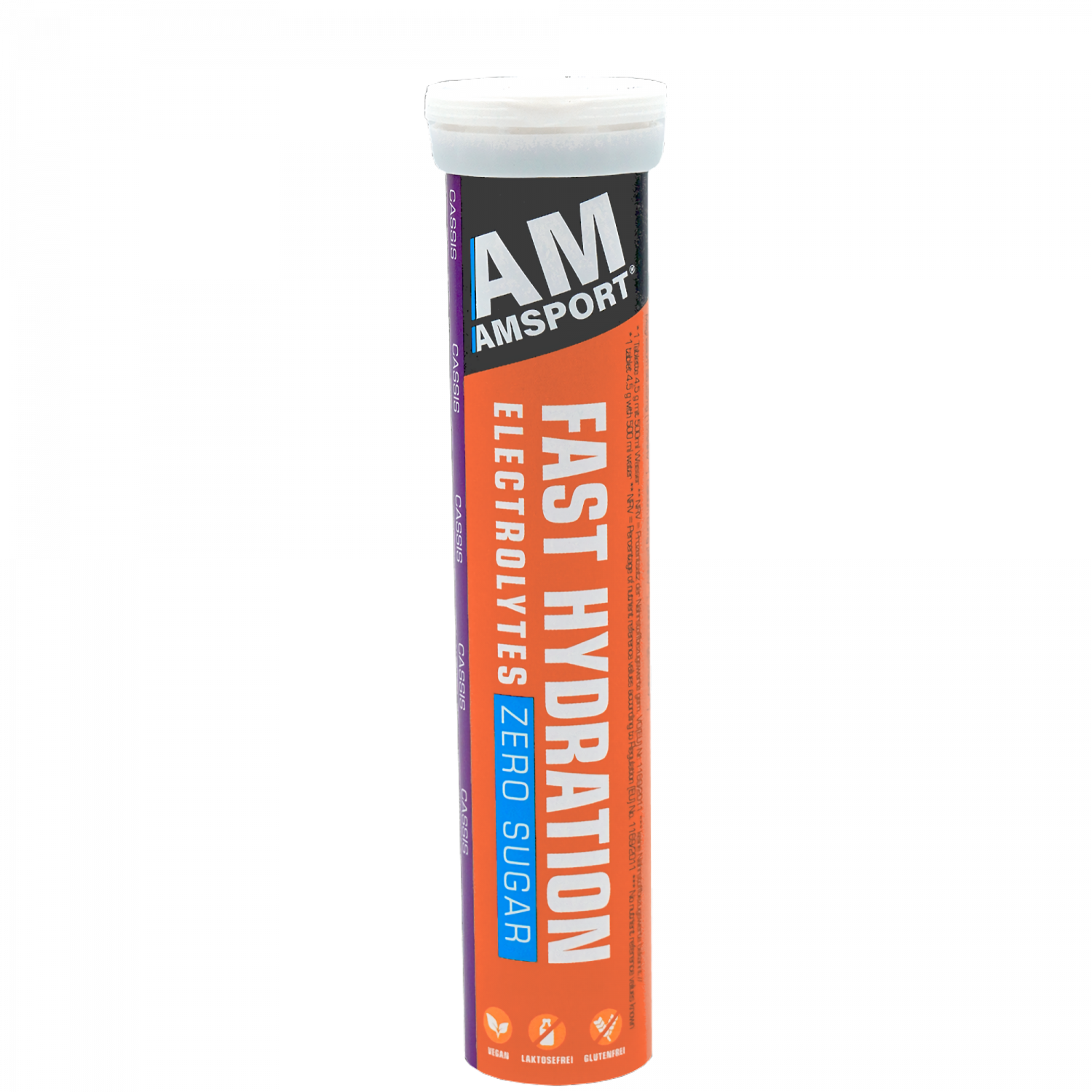 Marke: AM Sport Produkt: Elektrolyte Tabs Fast Hydration Geschmack: Schwarze Johannisbeere (Cassis)