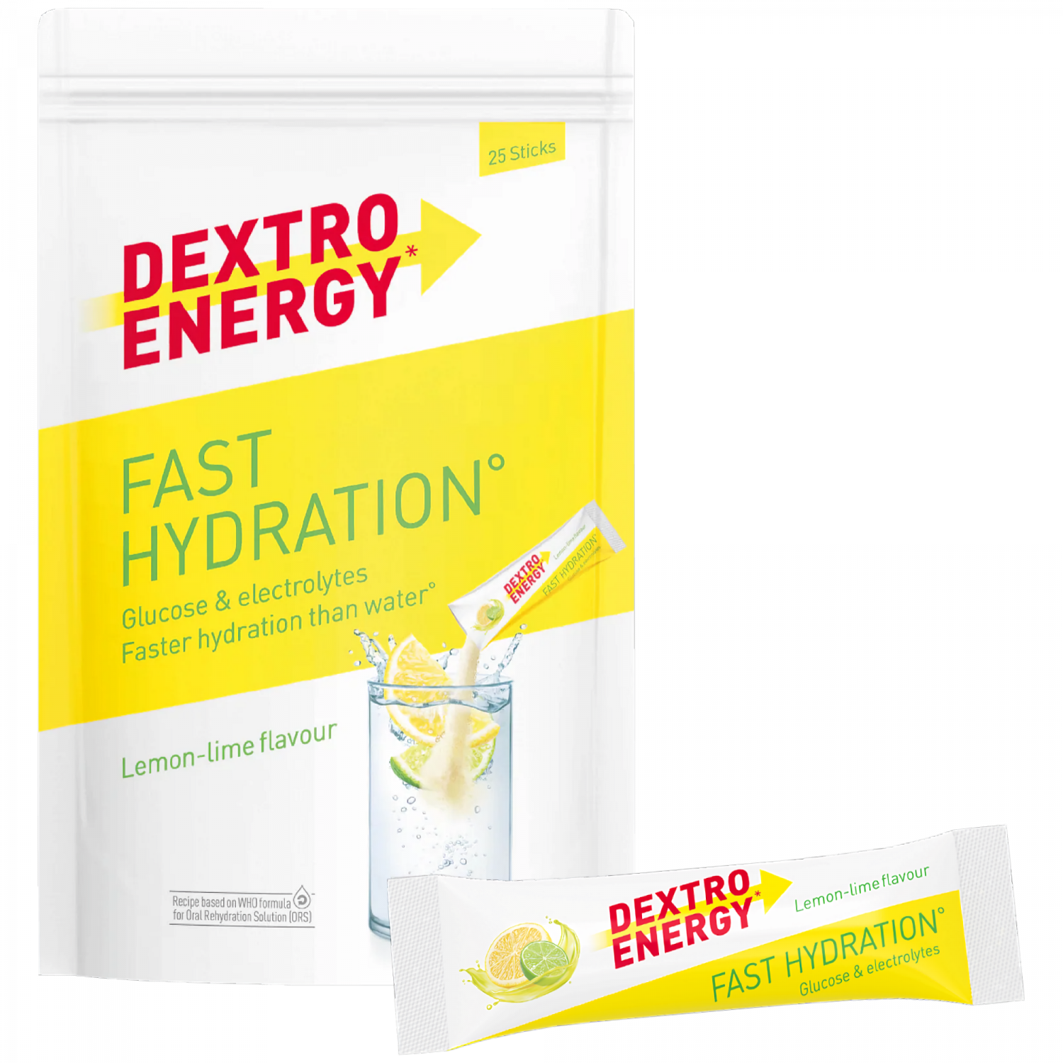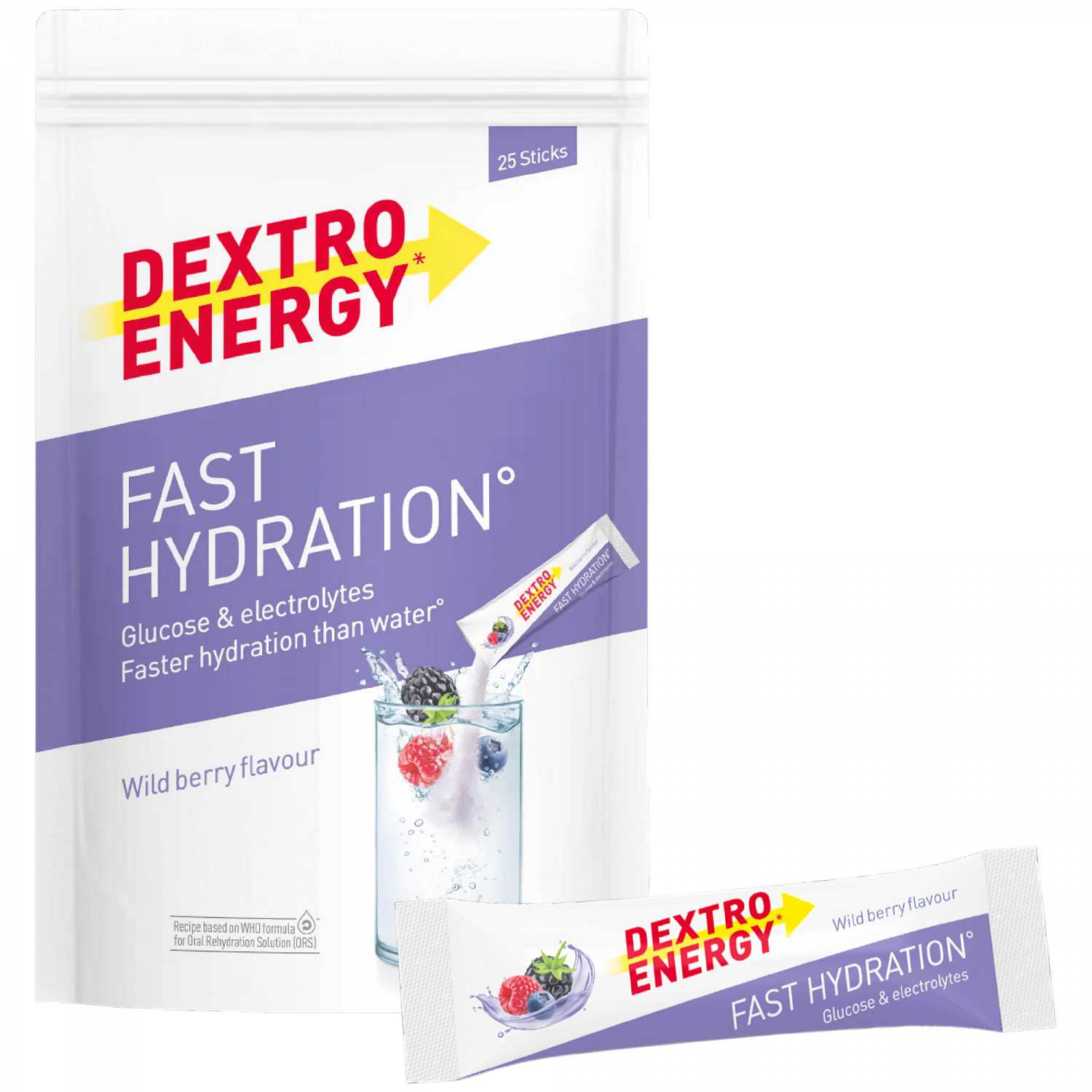 Dextro Energy Fast Hydration verbessert die Aufnahme von Wasser während körperlicher Betätigung. Die Rezeptur liefert Glukose, Vitamine und Mineralstoffe und basiert auf der WHO-Formel für orale Rehydratationslösungen. Das fruchtige Sportgetränk im kompakten 25 g Stick für unterwegs ist ideal für kurze Lauf- oder Radtrainings, an heißen Tagen und im Urlaub.